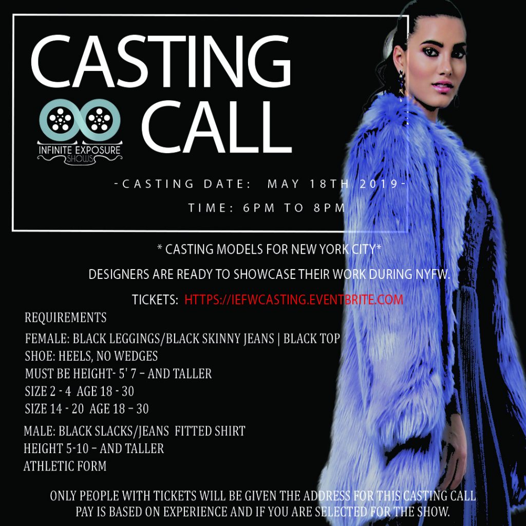 Be part of the #IEFW experience 4 slots left. Looking for a unique blend of designs. Fashion Fashion Fashion. NYFW SS20. For more information email [email protected]