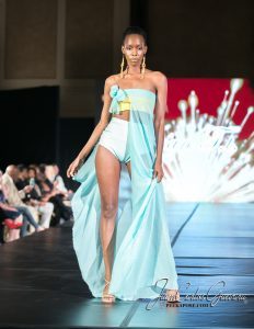 D’Lora Moda collection was the opener and the closer of this show. She started her line with chic black swimwear, off the shoulder ruffles with sharp white lines emphasizing the direction of the ruffles. D’Lora closed the show with majestic elegant gowns inspired by flower gardens, and well-known fashion labels such as Dior and Channel. This fashionista felt she was in front of royalty when D’Lora collection hit the runway. Her majestic ball gowns with lace overlays and appliqués flowers added to that feel of grandeur. “My dream is to make this Couture group bigger so that every girl can look beautiful in our dresses”, she said. If I had to describe D’Lora Moda collection in one word I would say “timeless”.